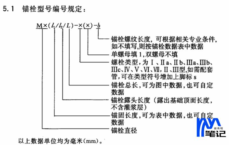 标准:HG/T 21545-2006 《地脚螺栓(锚栓)通用图》 胡伟明笔记 , 版权所有丨如未注明 , 均为原创丨本网站采用BY-NC-SA协议进行授权 转载请注明原文链接:地脚螺栓标记方法 喜欢 (0)
